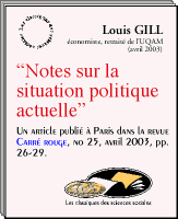 Louis Gill, “Notes sur la situation politique actuelle”, Un article publié à Paris dans la revue Carré rouge, no 25, avril 2003, pp. 26-29. Texte téléchargeable !