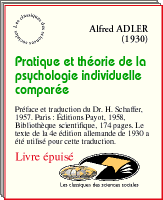 Alfred Adler, Pratique et théorie de la psychologie individuelle comparée (1930). Préface et traduction du Dr. H. Schaffer. Paris : Éditions Payot, 1961, Bibliothèque scientifique, 379 pages. Le texte de la 4e édition allemande de 1930 a été utilisé pour cette traduction. (Jeudi, le 24 avril 2003.